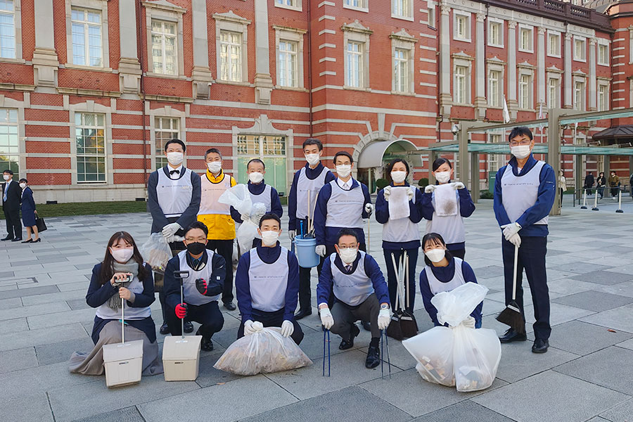 東京ステーションホテルとホテルメトロポリタン 丸の内からも総支配人を始めスタッフが参加し、綺麗な街・駅づくりを目指しています。